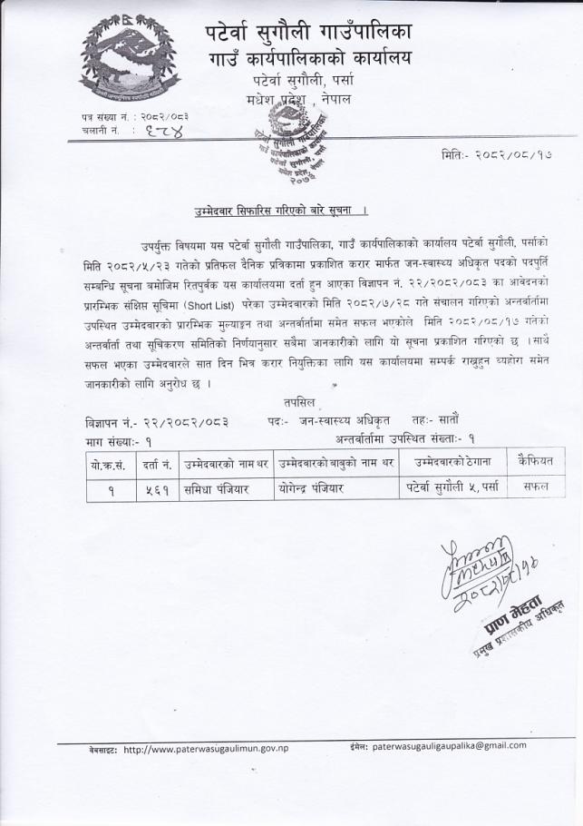 उम्मेदवार सिफारिस गरिएको बारे सूचना