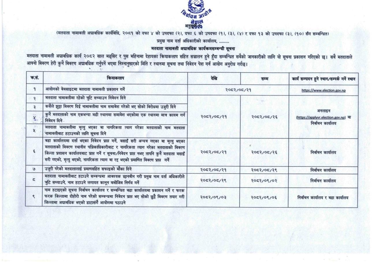 संशोधन मतदाता नामावली अध्यावधिक (दाबी बिरोध) कार्यक्रम, २०८२ सम्बन्धी सूचना