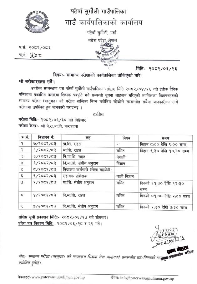 सामान्य परीक्षाको कार्यतालिका तोकिएको बारे