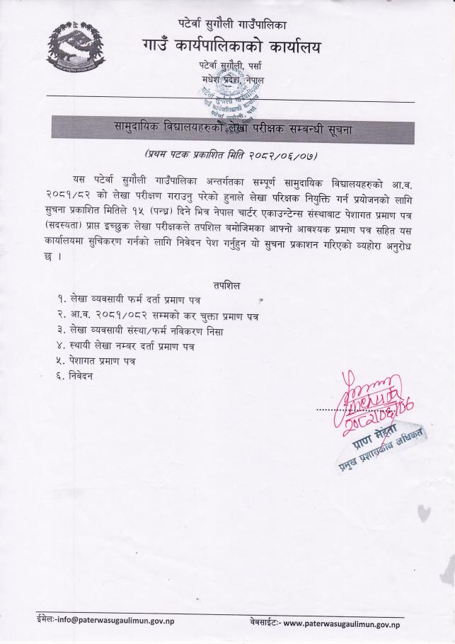 सामुदायिक विद्यालयहरुको लेखा परीक्षक सम्बन्धी सूचना