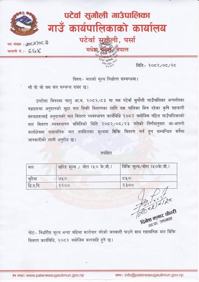 » मलको मूल्य निर्धारण सम्बन्धमा
