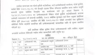 - अन्य कागजातहरु नियामानुसार आवश्यक परेमा