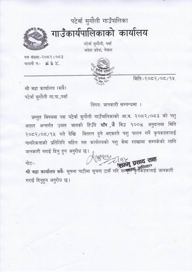 उन्नत जातको हिउँदे घास जै विउ वितरण समबन्धमा