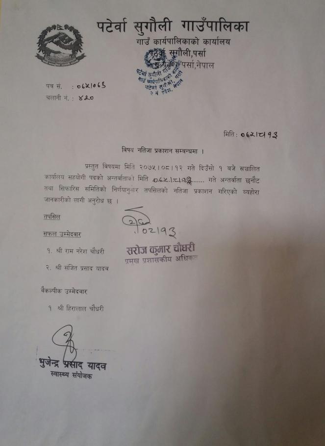 कार्यालय सहयोगी पदको नतिजा प्रकाशन