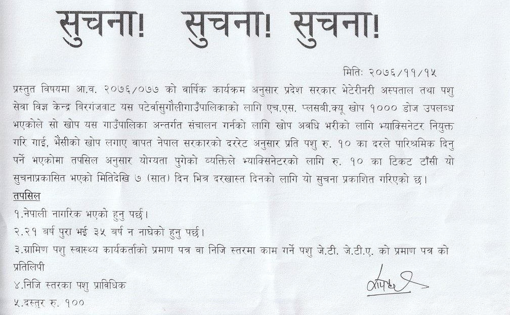 » पि.पि.आर खोप र एच.एस.प्लसबी.क्यू खोप - लगाउनको लागि भ्याक्सिनेटर आवश्यक्ताको सुचना