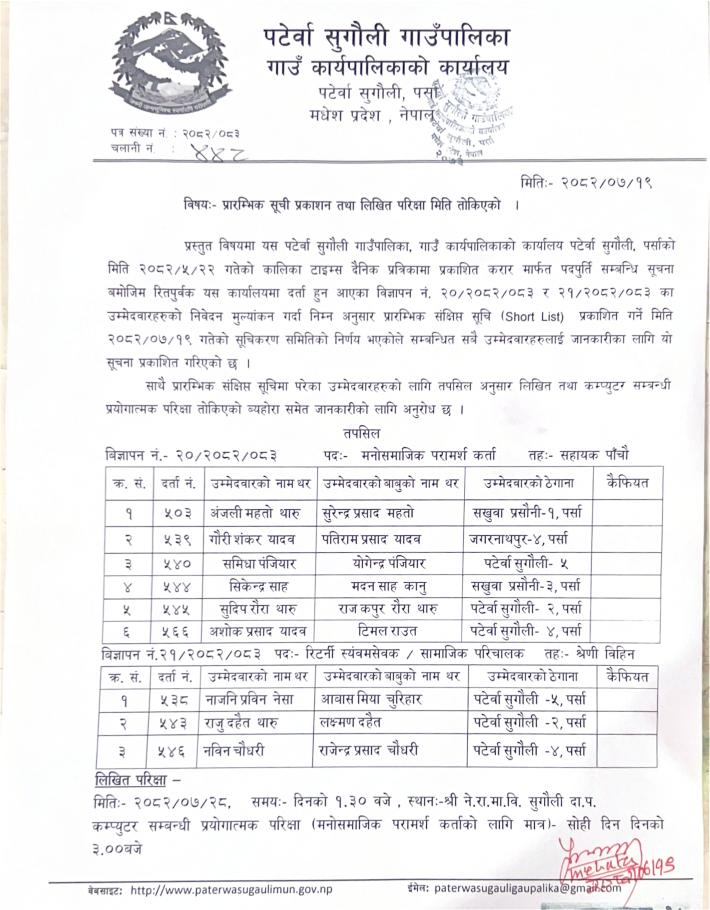 » प्रारम्भिक सूची प्रकाशन तथा लिखित परीक्षा मिति तोकिएको
