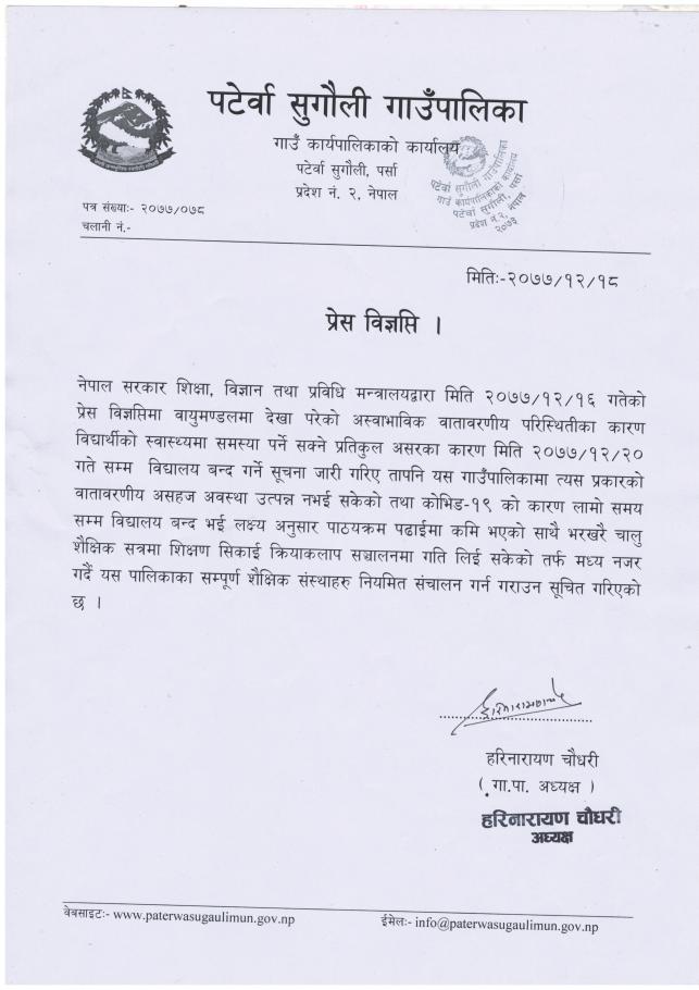 पटेर्वा सुगौली गाउँपालिकाको दश वर्षिय शिक्षा योजना
