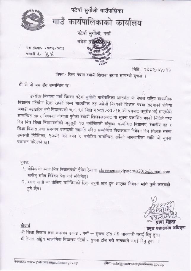 » रिक्त पदमा स्थायी शिक्षक सरुवा सम्बन्धी सूचना