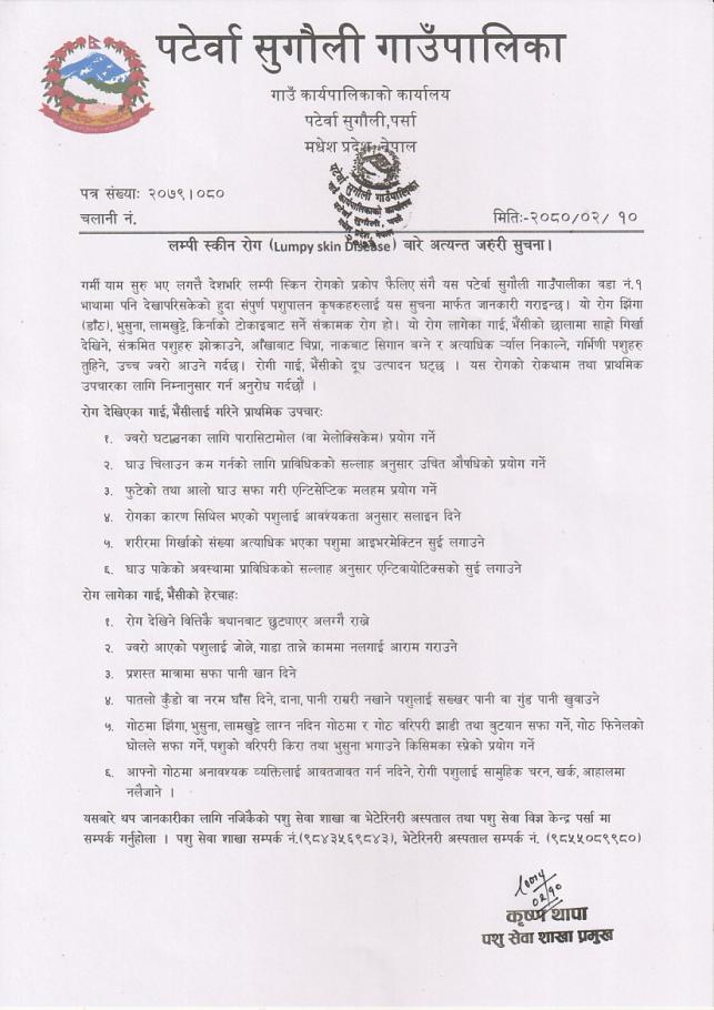 लम्पी स्कीन रोग बारे अत्यन्त जरुरी सुचना