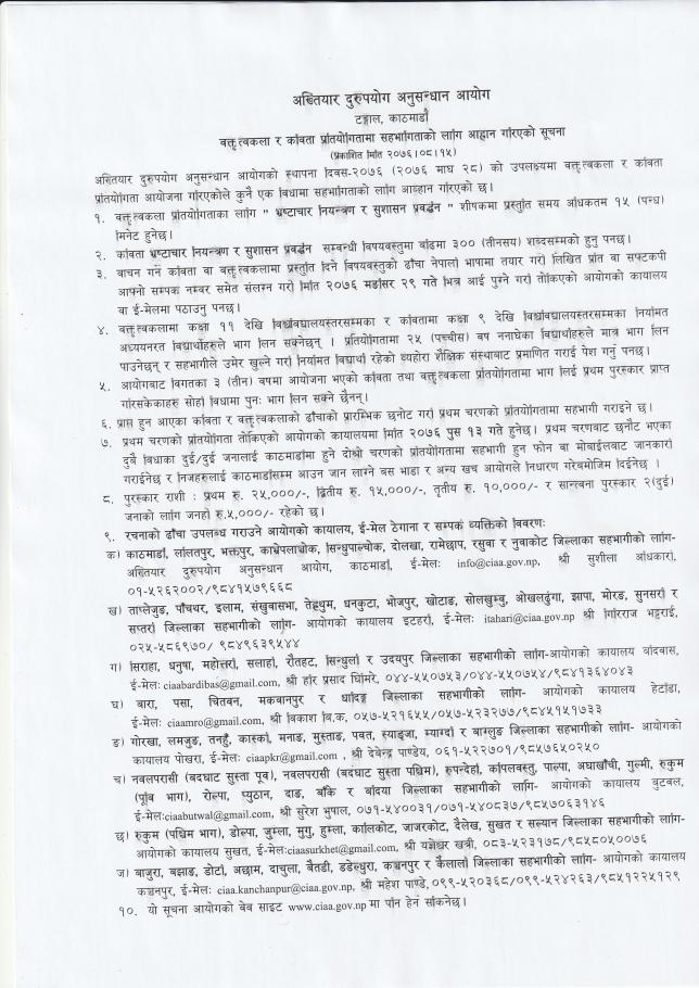 वक्तृत्वकला र कविता प्रतियोगितामा सहभागिताको लागि आहवान गरिएको सूचना